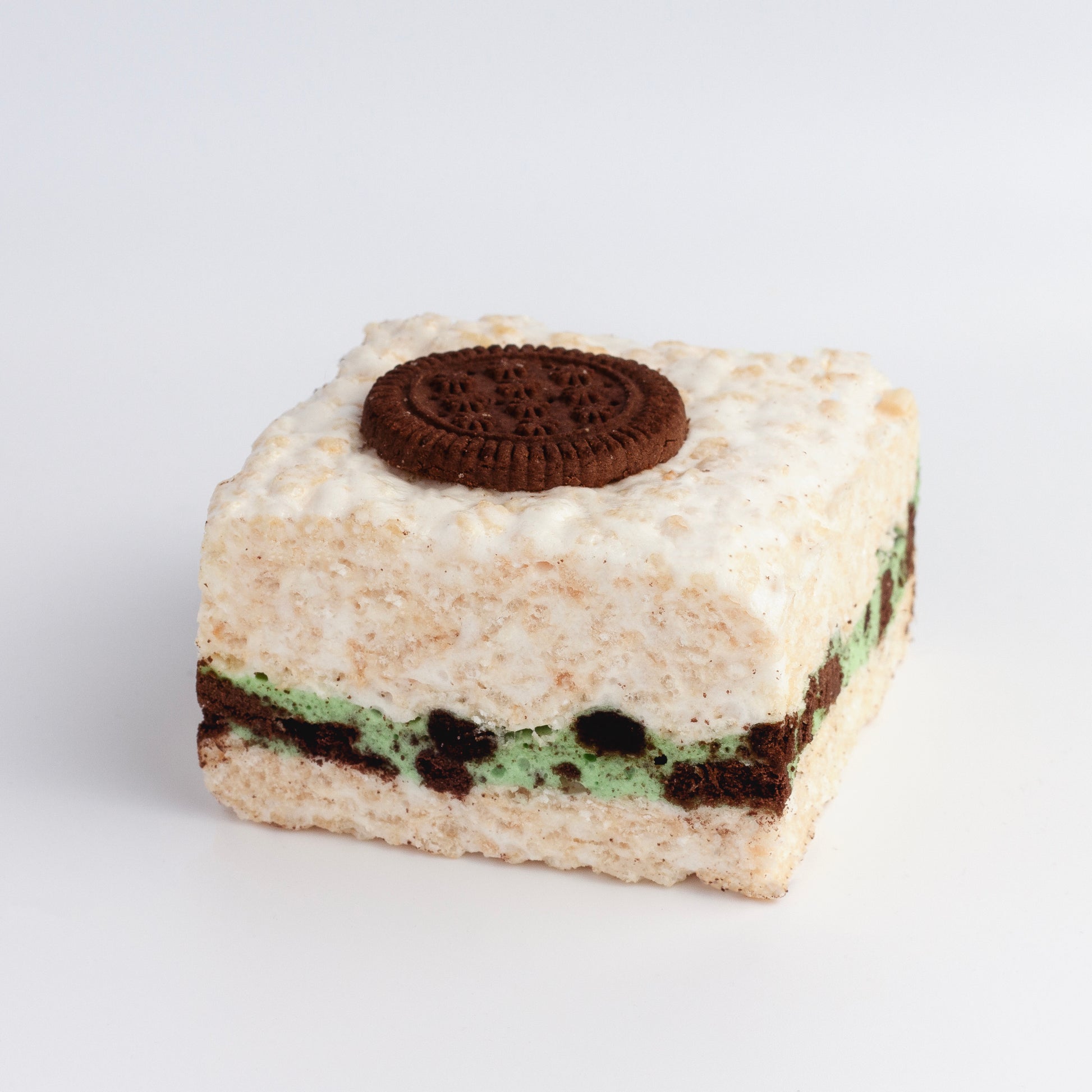 Crushed chocolate mint cookies and a layer of minty cream are packed into the center of this soft, gooey Crispycake—with a whole cookie on top for good measure. It’s rich, refreshing, and perfectly balanced—like a bite of your favorite mint chocolate treat, with that signature Crispery crunch.
