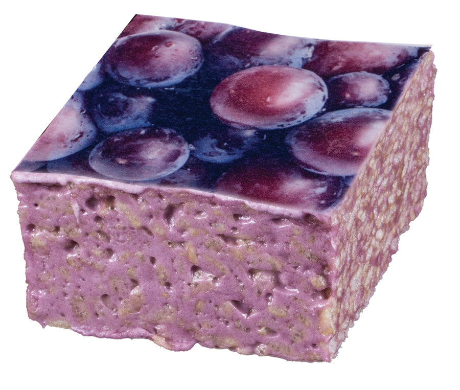 Sweet, juicy, and bursting with bold grape flavor, this Crispycake delivers that nostalgic candy-like taste you know and love. Topped with an edible image of ripe purple grapes, it’s a fruity twist on our classic marshmallow treat that’s as fun to eat as it is to look at. Get ready for a flavor-packed crunch in every bite!
