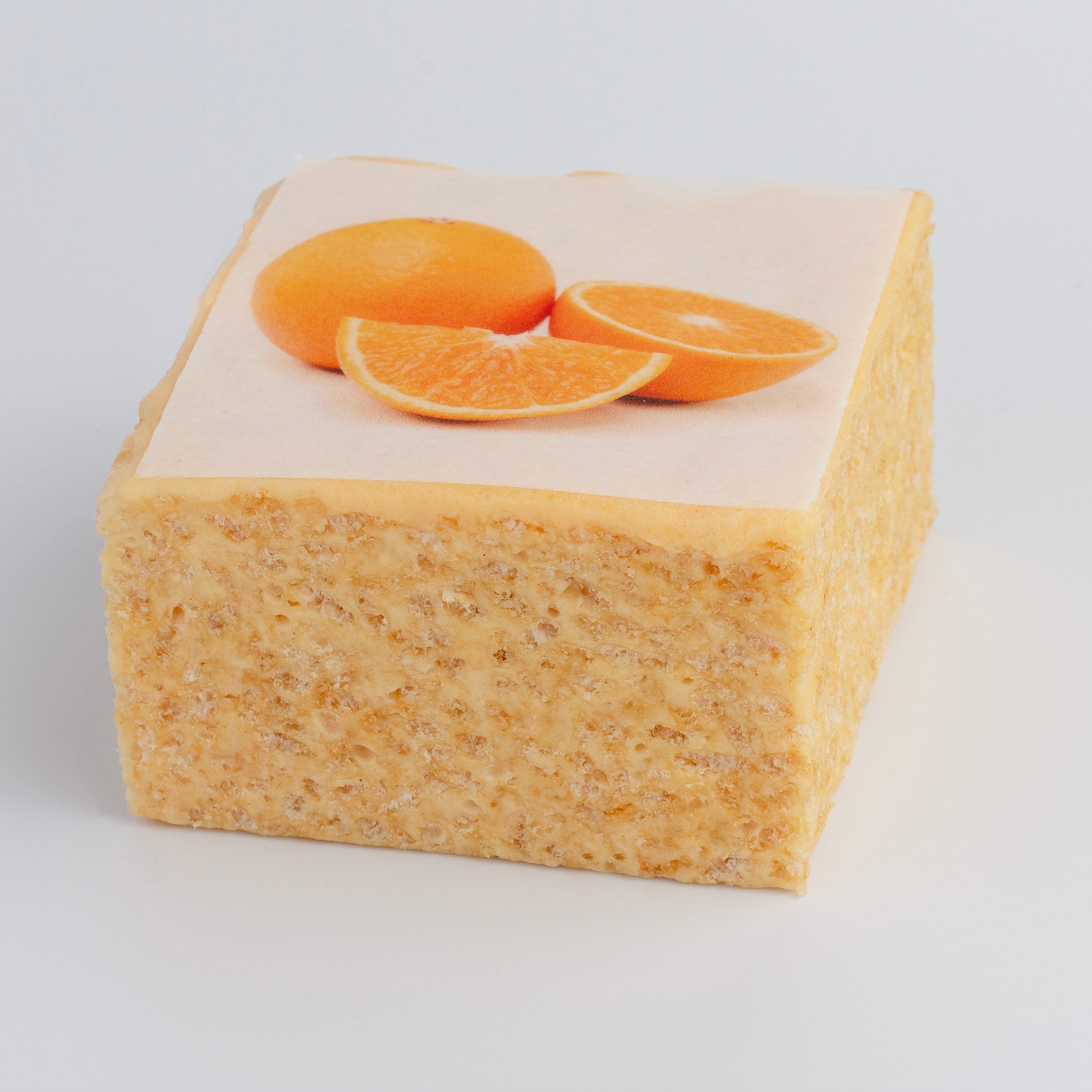Zesty, sweet, and full of citrus sunshine, this bright orange-flavored Crispycake packs a punch of bold fruit flavor in every marshmallowy bite. Topped with an edible image of juicy orange slices, it’s the perfect treat for candy lovers and citrus fans alike. One bite and your taste buds will be totally zinging!